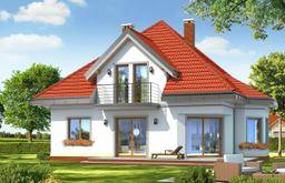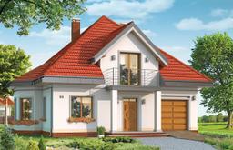Projekt domu Agatka to dom dla 4- 5-osobowej rodziny, budynek parterowy z poddaszem użytkowym przykryty kopertowym, czterospadowym dachem.Dom zaprojektowano w spokojnej stylistyce z przenikającymi się tradycyjnymi i nowoczesnymi detalami. Zwarta bryła budynku z wbudowanym garażem, została ozdobiona lukarnami z balkonami, wykuszem jadalni, oraz narożnym podcieniem salonu. Prosta, czytelna bryła podkreśla elegancję zewnętrznej architektury budynku. Przestrzeń parteru w projekcie domu Agatka zaprojektowano w taki sposób, aby wszystkie pomieszczenia otaczały hol i centralnie usytuowane schody. Część dzienną stanowią hol, salon, jadalnia i kuchnia - pomieszczenia tworzące jedno otwarte wnętrze, są jednak częściowo od siebie oddzielone. W części gospodarczej na parterze zaprojektowano garaż, kotłownię i dodatkowe pomieszczenie (może ono być również zaadaptowane na dodatkowy pokój - np. gabinet). Na poddaszu mieszczą się trzy duże sypialnie z garderobą i szafami wbudowanymi, oraz przestronna łazienka - pokój kąpielowy. Na niewielkiej powierzchni udało się zaprojektować funkcjonalne wnętrza z przestronnymi, ustawnymi pokojami. Projekt domu Agatka z biura MGProjekt dostępny jest także w wersji odbicia lustrzanego.