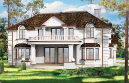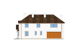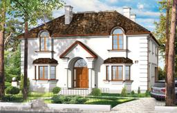 Projekt domu Ambasador 2 to reprezentacyjny, duży dom, na działkę z ogrodem usytuowanym po bocznej stronie. Elewację frontową domu zaprojektowano jako symetryczną, z wykuszami po bokach i ciekawym portykiem wejściowym. W projekcie Ambasador 2 garaż został umieszczony w tylnej części domu, aby nie zaburzać willowego nastroju wrotami garażowymi lub stojącymi na podjeździe autami. Elewacja ogrodowa budynku ozdobiona została wykuszami oraz eleganckim tarasem z tralkami na piętrze, tworzącym jednocześnie duży podcień dostępny z salonu na parterze. Wnętrze domu to duże pomieszczenia, dodatkowo łączące się przestrzennie, hol z klasycznymi zabiegowymi schodami, czy wysoki hol-galeria na piętrze ze świetlikami w dachu. Zaprojektowana w ten sposób przestrzeń tworzy eleganckie, komfortowe miejsce do życia. Dom Ambasador 2 posiada częściowe podpiwniczenie. Zapraszamy do zapoznania się z pełną ofertą pracowni MG Projekt: Dostępna jest również wersja odbicia lustrzanego projektu Ambasador 2 oraz wersja mniejsza o 48 m2 projekt domu Ambasador 3 wersja podstawowa projekt domu Ambasador