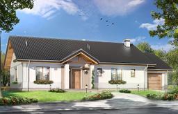Projekt domu Anatol to wygodny, parterowy dom dla rodziny 4- 6-osobowej, o bardzo stonowanej architekturze. Projekt Anatol łączy w sobie prostotę, nowoczesną racjonalność i tradycyjny detal architektoniczny. Parterowa bryła budynku przekryta dwuspadowymi dachami, kryje w sobie dodatkową przestrzeń strychu, który po zaadaptowaniu, może służyć jako poddasze użytkowe. Dzięki przemyślanym proporcjom, oraz dodatkom, takim jak ganek frontowy na kolumienkach, czy duża ogrodowa weranda, przekryta dwuspadowym dachem - dom Anatol jest jednocześnie prosty, ciekawy i elegancki. We wnętrzu domku, prócz przestronnego salonu połączonego z holem i kuchnią, zaprojektowano dodatkowo cztery pokoje, duże pomieszczenie gospodarcze, dwie łazienki i wc. To wystarczająca ilość pomieszczeń nawet dla dość licznej rodziny. Dobudowany do głównej bryły garaż jest powiększony o dodatkowe pomieszczenie gospodarcze. Schody na strych prowadzą z pomieszczenia gospodarczego - kotłowni. W przypadku adaptacji strychu na poddasze użytkowe należy zmienić układ ścianek działowych kotłowni łazienki i włączyć schody do holu. Dostępna jest także wersja odbicia lustrzanego projektu Anatol. Zapraszamy do zapoznania się z pełną ofertą pracowni MG Projekt: projekt domu Anatol 2.