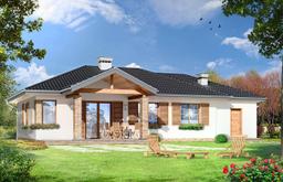 Projekt domu Czaruś to budynek jednorodzinny, parterowy, przykryty czterospadowym dachem, z dobudowanym garażem. Projekt domu Czaruś został zaprojektowany z myślą o 4- 5-osobowej rodzinie. Prosta, nieskomplikowana w budowie bryła budynku, oraz bezpretensjonalna architektura, dają czytelny efekt współczesnego domu nawiązującego do tradycji dworkowej, ale z wykorzystaniem nowych materiałów i detali. Elewację frontową domu ozdabia - i jednocześnie akcentuje wejście - centralnie wkomponowany ganek wejściowy, wsparty na dwóch kolumnach. Od strony ogrodu urozmaiceniem bryły jest duży podcień, przekrywający częściowo taras. Wnętrze podzielono na część dzienną - z obszernym salonem, holem i kuchnią, oraz nocną - z trzema sypialniami i łazienką. W projekcie domu Czaruś garaż połączono z wnętrzem korytarzem - garderobą. Za garażem umieszczono kotłownię z wyjściem ogrodowym. Pracownia posiada wersję odbicia lustrzanego projektu.