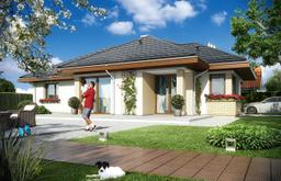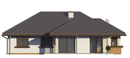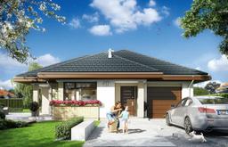 Projekt domu Dom na Miarę jest to parterowy dom jednorodzinny dla rodziny 4- 5-osobowej. Nieduży, mieszczący się powierzchnią w wymaganiach programu MDM. Budynek oparty jest na prostokątnym rzucie z wystającą częścią salonu i kuchni. Całość przykryta jest wielospadowym dachem. Dom nadaje się na wąską parcelę, a w szczególności na działkę z wjazdem od południa. Dzięki skierowaniu okien części dziennej i sypialni na elewację boczną i częściowo na front domu, nawet na działce o niekorzystnym układzie względem stron świata, wnętrze będzie dobrze oświetlone. Wygląd zewnętrzny domu współtworzą nowoczesne materiały i rozwiązania, ciekawie rozmieszczone okna, podcienie, narożne okna, okładziny ścian, oraz urozmaicony dach. Całość dopełnia funkcjonalne wnętrze domu. Jednoprzestrzenne wnętrze dzienne, z salonem z częścią wypoczynkową i jadalną, otwartą kuchnią i holem, otwiera się przez duże przeszklenia na narożny, okalający dom taras. W głębi domu znajdują się pokoje domowników - trzy sypialnie, łazienka, oddziel e wc. Z przedsionka przechodzimy do garażu i kotłowni. Schodki z holu prowadzą nas na strych, który można zaadaptować na poddasze. W salonie znajdujemy miejsce na osobne ściany: kominkową i telewizyjną, bajeczne otwarcie na ogród przez narożne okno, oraz wyjście na zadaszony taras. Dom ma nieskomplikowaną konstrukcję i zwartą bryłę. Powinien być niedrogi z budowie i późniejszym utrzymaniu. „Dom na Miarę” jest energooszczędny - ma bardzo dobre ocieplenia przegród. Zapraszamy !