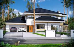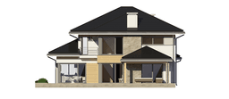 Projekt domu Dom z Widokiem 2 jest wariantową pomniejszoną wersją cieszącego się popularnością projektu Dom z widokiem. Dom został nieco zmniejszony w stosunku do swojego pierwowzoru. Powierzchnia została zmniejszona o niecałe 20%. Podobnie koszty realizacji - również udało się ograniczyć o jedną piątą budżetu. Projekt domu Dom z Widokiem 2 to nowoczesna miejska willa, o dynamicznej ciekawej architekturze, otwarta na ogród, z mnóstwem atrakcyjnych detali i ciekawą bryłą. Dobrze zestawione ze sobą materiały, detale i kolorystyka tworzą niepowtarzalne wrażenie komfortu, wygody i niezależności. Program użytkowy został nieco okrojony w stosunku do bazowego projektu, ale dom nic nie stracił na swojej funkcjonalności. Jego wnętrze nadal jest pełne przestrzeni. Wchodząc do wnętrza domu czujemy luz i rozkoszujemy się niczym nie ograniczonym komfortem. Na parterze zaprojektowano otwartą część dzienną, z salonem z pustką i otwarciem na antresolę na piętrze, z jadalnią, holem z reprezentacyjnymi schodami, oraz dużą kuchnią z wyspą. Wnętrze przedziela prostopadłościan spiżarni i zabudowy kuchennej. Do domu wchodzimy przez otwarty, przeszklony wiatrołap z szatnią. Na parterze dodatkowo mieści się kotłownia, wc, oraz garaż z pomieszczeniem magazynowo-gospodarczym. Na piętrze zaprojektowano trzy sypialnie, z oddzielnym apartamentem rodziców z własną łazienką i garderobą, ogólnodostępną łazienkę, oraz strych - pralnię/suszarnię, lub po prostu magazyn, albo dodatkowy pokój. Dom z Widokiem 2 jest energooszczędny - zastosowano w nim bardzo dobre ocieplenia i instalacje. Łatwo można projekt dostosować do standardu NF40. Budynek ma zwartą bryłę. Jest nieco tańszy w realizacji od projektu bazowego. Zapraszamy do zapoznania się z pełną ofertą pracowni MG Projekt tej serii: Dom z Widokiem, Dom z Widokiem 2, Dom z Widokiem 2C, Dom z Widokiem 3, Dom z Widokiem 3F, Dom z Widokiem 4, Dom z Widokiem 5, Dom z Widokiem 6, Dom z Widokiem 6B, Dom z Widokiem B, Dom z Widokiem E.