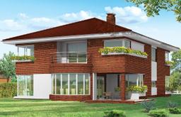 Projekt domu Gabriela 3 to prestiżowy dom o jednopiętrowej bryle przekryty czterospadowym dachem, przeznaczony dla 4- 6-osobowej rodziny. Architektura domu Gabriela 3 nawiązuje do stylu modernistycznego, we współczesnym ujęciu. Elementy, takie jak narożne okna, balkony z zaokrąglonymi balustradami, łukowy wykusz jadalni, podział elewacji na poziome pasy tworzą ciekawą stylistycznie architekturę zewnętrzną budynku. Dla projektu domu Gabriela 3 przewidziano kilka różnych wariantów aranżacji elewacji. Wnętrze willi: na parterze przestrzeń dzienna składająca się z salonu, jadalni z pięknym łukowym wykuszem, przestronnego holu z wygodnymi schodami na piętro, obszernej kuchni z aneksem na szybkie posiłki. Z pokoju dziennego wychodzimy do podcienia i na taras. Na parterze zaprojektowano również gabinet, garaż i kotłownię. Na piętrze znajduje się apartament rodziców z łazienką, garderobą i tarasem na ogród, trzy sypialnie dzieci, z łazienką, oraz pralnią i pokój sportowy. W domku Gabriela 3 zaprojektowano również częściowe podpiwniczenie - piwnica dostępna z zewnątrz domu, schodkami z ogrodu. Z piwnicy można zrezygnować jeśli warunki gruntowe nie pozwalają na jej budowę. Projekt domu Gabriela 3 dostępny jest również w innych wersjach: odbicia lustrzanego, projekt domu Gabriela oraz projekt domu Gabriela 2. Zapraszamy!