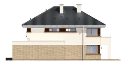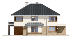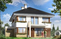 Projekt domu Helios to uroczy piętrowy domek dla 4- 5-osobowej rodziny. Jest to propozycja dla Inwestorów lubiących domy w nowoczesnej architekturze, którzy nie rezygnują z funkcjonalności i komfortu swojego domu. Piętrowa bryła budynku została przekryta czterospadowym dachem, a wbudowany częściowo garaż zwieńczono dachem płaskim. Dobrze dobrane detale architektoniczne, ciekawie rozmieszczone okna, drewniane i ceglane okładziny na ścianach - wszystko to tworzy atrakcyjny wygląd zewnętrzny domu. Wnętrze to otwarta część dzienna na parterze, z salonem, holem z ładnie wkomponowanymi schodami, jadalnią i kuchnią, oraz sypialnie na piętrze domu. Na parterze w domu Helios zaprojektowano dodatkowy pokój - gabinet lub sypialnię gościnną, oraz garaż z kotłownią. Na piętrze znajduje się apartament rodziców z własną łazienką i garderobą, sypialnie dziecięce z łazienką, oraz dodatkowy pokój. Pracownia posiada wersję odbicia lustrzanego projektu domu Helios. Zapraszamy do zapoznania się z pełną ofertą pracowni MG Projekt: projekt domu Helios wariant Cprojekt domu Helios wariant Dprojekt domu Helios wariant E, projekt domu Helios wariant J, projekt domu Helios wariant F, projekt domu Helios wariant I, projekt domu Helios wariant B, projekt domu Helios wariant H.