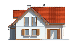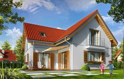 Projekt domu Lucky to dom jednorodzinny, dla 4- 6-osobowej rodziny, parterowy z użytkowym poddaszem, zaprojektowany na planie litery „L”, z osłoniętym z dwóch stron tarasem, oraz z dobudowanym garażem. Dom Lucky dzięki aż sześciu pokojom doskonale nadaje się dla większej rodziny, z większą gromadką dzieci, bądź dla rodziny trzypokoleniowej. Architektura domu jest bezpretensjonalna - dom jest po prostu ładny. Udane proporcje i połączenie brył tworzy budynek o ludzkiej skali, nie przesadzony, który doskonale wpasuje się w każde otoczenie. Połączenie tradycyjnej stylistyki z nowoczesnymi materiałami i kolorystyką tworzą udany efekt. Parter domu to otwarta przestrzeń dzienna, z centralnym holem i dekoracyjnymi schodami, salon z kominkiem i ścianą TV, otwartą kuchnią i jadalnią. Razem pomieszczenia te tworzą jednoprzestrzenne duże wnętrze dzienne, ładnie otwarte na taras i ogród. Na parterze mamy dodatkowy pokój, łazienkę, kotłownię i garaż. Z kuchni dostępna jest spiżarnia. Na poddaszu zaprojektowano aż cztery pokoje, w tym osobny apartament rodziców z własną łazienką, garderobą i balkonem, oraz dużą łazienkę dla wszystkich domowników. Funkcjonalność wnętrza i sensowne wykorzystanie przestrzeni idzie w projekcie w parze z energooszczędnymi rozwiązaniami. Dom jest bardzo dobrze izolowany - w łatwy sposób można go dostosować do standardu NF40. Budynek ma prostą konstrukcję - będzie łatwy w budowie, a dzięki energooszczędności, niedrogi w późniejszym utrzymaniu. Projekt domu Lucky posiadamy również w odbiciu lustrzanym. Zapraszamy !