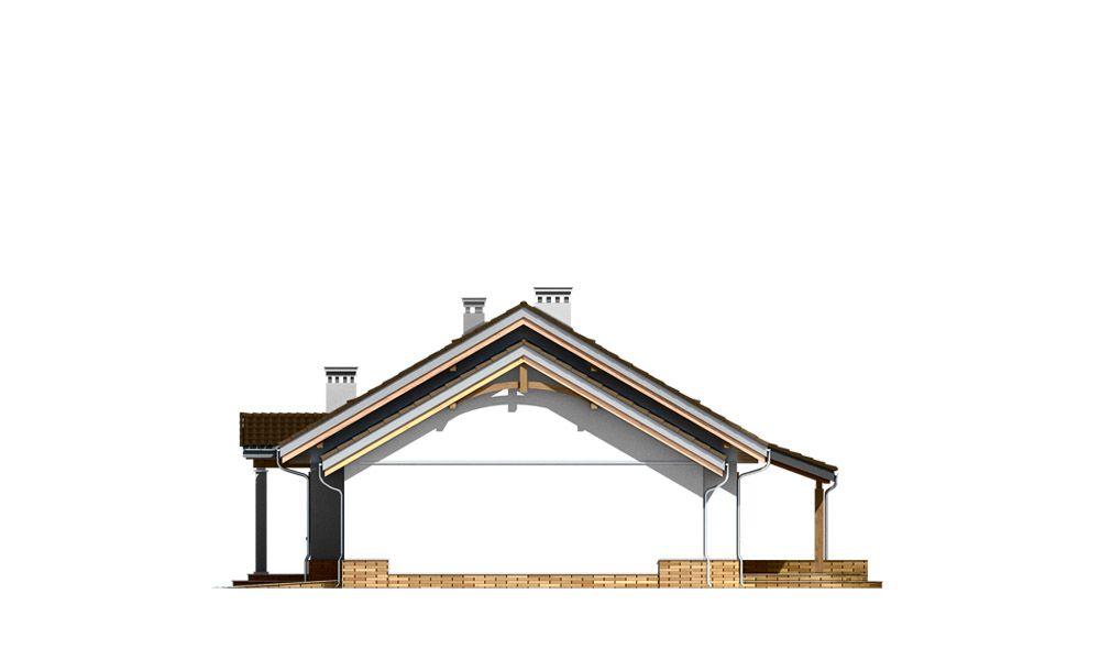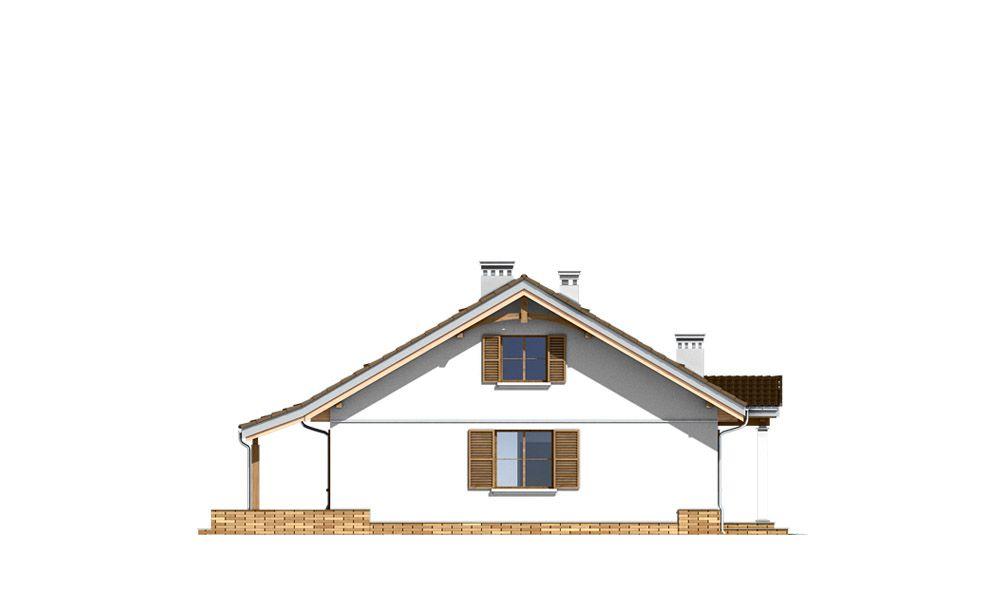 Projekt domu Niezapominajka z garażem jest wariantową wersją projektu domu Niezapominajka. Dom jednorodzinny, parterowy, zaprojektowany został z myślą o czteroosobowej rodzinie. Prostokątna bryła budynku z dobudowanym garażem została przekryta dwuspadowymi dachami. Nieużytkowy strych nad parterem można zaadaptować na poddasze. Architektonicznie dom Niezapominajka z Garażem nawiązuje do typowej tradycyjnej stylistyki. Front domu z zaakcentowanym gankiem wejściowym wspartym na dwóch kolumnach z oknami po bokach, przypomina klasyczny polski dworek. Wnętrze domu podzielono na część dzienną, z salonem, holem i częściowo otwartą kuchnią, oraz część nocną z trzema sypialniami i łazienką. W niewielkiej kotłowni można zainstalować kocioł gazowy, lub można przenieść kotłownię do pomieszczenia za garażem i umieścić tam kocioł na paliwo stałe. Projekt domu Niezapominajka z garażem stanowi świetną propozycję dla Inwestorów chcących niedrogo wybudować dom, którzy chcą zostawić sobie możliwość wykończenia w drugim etapie dodatkowej przestrzeni na strychu - lub po prostu mieć duży przydatny przecież strych. Projekt domu Niezapominajka z garażem dostępny jest także w odbiciu lustrzanym oraz innych jego wariantów: projekt domu Niezapominajka, projekt domu Niezapominajka z garażem 2.