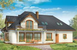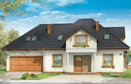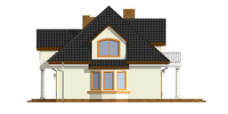 Projekt domu Saga 3, to odpowiedź naszej pracowni na życzenie wielu naszych Klientów, którzy chcieli widzieć ten domek z dwustanowiskowym garażem. Projekt domu Saga cieszy się dużą popularnością, nie mniej jednak część osób rezygnowało z niego ze względu na pojedynczy garaż. Teraz możecie Państwo wybierać między projektami Sagą z pojedynczym i podwójnym garażem. Dom ma bardzo zgrabną bryłę, główna część budynku przekryta jest czterospadowym dachem, z eleganckim frontonem wspartym na kolumnach wejściowych, oraz pięknym balkonem i lukarną od strony ogrodu. Dobudowany szerszy garaż wpływa korzystnie na proporcje domu - Saga 3 wygląda wręcz bardziej dostojnie w tej wersji. Wnętrze w projekcie nie uległo zmianie - na parterze znajduje się jednoprzestrzenny salon, połączony z holem, jadalnią i częściowo z kuchnią. Na parterze zaprojektowano dodatkowy pokój, łazienkę i kotłownię. W projekcie, za podwójnym garażem znajduje się pomieszczenie gospodarcze. Na poddaszu domu, dzięki powiększeniu przestrzeni nad garażem zmieściły się cztery pokoje z łazienką, garderobami i dodatkowo stryszkiem. Pracownia dysponuje odbiciem lustrzanym projektu domu Saga oraz inne wersje: projekt domu Saga projekt domu Saga 2, projekt domu Saga 3.