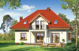 Projekt domu Stokrotka to uroczy budynek o prostej, klarownej bryle. Domek jednorodzinny przeznaczony dla 4- 5-osobowej rodziny. Projekt domu Stokrotka zbudowany jest na planie prostokąta. Rzut parteru i poddasza zwieńczony jest czterospadowym dachem z symetrycznie ustawionymi lukarnami od frontu i od strony ogrodu. Frontowa lukarna połączona jest z podcieniem wejściowym na kolumienkach. Od strony ogrodu zaprojektowano częściowe zadaszenie tarasu dużym balkonem. Urok domu to jego prostota i właściwe proporcje, do tego ciekawe detale, oraz funkcjonalnie zaprojektowane, przemyślane wnętrze. Na parterze mieszkania, zaprojektowano obszerny pokój dzienny z centralnie usytuowanym kominkiem, oraz dużymi przeszkleniami na taras i ogród. Salon w Stokrotce łączy się częściowo z półotwartą kuchnią przez aneks jadalny z wykuszem. Bardzo ładny hol z reprezentacyjnymi schodami na poddasze dopełnia wnętrze parteru. Dodatkowo w projekcie, przewidziano jeszcze część gospodarczą z garażem i kotłownią. Na poddaszu zaprojektowano trzy sypialnie z garderobami lub szafami wbudowanymi, łazienkę i dodatkowy pokój - gabinet lub czwartą sypialnię. Pracownia dysponuje wersją odbicia lustrzanego projektu domu Stokrotka.