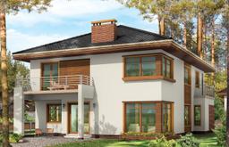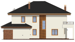 Projekt domu Topaz to elegancki, piętrowy dom jednorodzinny. Budynek o nowoczesnej acz nie przesadzonej architekturze. Projekt domu Topaz występuje w dwóch wersjach wariantowych, ze zróżnicowaną częścią frontową. Bryła budynku jest urozmaicona kilkoma użytymi materiałami, wykuszami i daszkami. Wejście do mieszkania zostało zaakcentowane podcieniem z łukową boczną ścianą z klinkieru. Wnętrze jest uniwersalnym, wygodnym mieszkaniem dla rodziny 4- 6-osobowej. Składa się z czterech sypialni na piętrze, z których każda ma swoją garderobę. W sypialni rodziców zaprojektowano dodatkową łazienkę. Na parterze do dyspozycji mamy salon połączony z jadalnią i holem, kuchnię i dodatkowy pokój - gabinet. W domu przewidziano również garaże i przestrzeń gospodarczą. Część ogrodowa domku to duże przeszklenia - otwarcia z salonu na otaczającą dom działkę. Pracownia dysponuje też projektem Topaz w odbiciu lustrzanym.