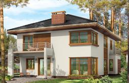 Projekt domu Topaz 2 to piętrowy, reprezentacyjny budynek jednorodzinny, o nowoczesnej acz nie przesadzonej architekturze. Zaprojektowano go z myślą o rodzinie 4- 6-osobowej. Projekt domu Topaz 2 występuje w dwóch wersjach wariantowych, ze zróżnicowaną częścią frontową. Bryła budynku jest urozmaicona kilkoma użytymi materiałami, wykuszami i daszkami. Wejście do domu zostało zaakcentowane podcieniem z łukową boczną ścianą z klinkieru. Wnętrze jest uniwersalnym wygodnym mieszkaniem dla średniej wielkości rodziny. Składa się z czterech sypialni na piętrze, z których każda ma swoją garderobę. Sypialnia rodziców ma dodatkową łazienkę. Na parterze do dyspozycji mamy salon połączony z jadalnią i holem, kuchnię i dodatkowy pokój - gabinet. W domu przewidziano również garaże i przestrzeń gospodarczą. Część ogrodowa budynku to duże przeszklenia - otwarcia z salonu na otaczającą dom działkę. Pracownia dysponuje też projektem Topaz w odbiciu lustrzanym oraz innymi wersjami: projekt domu Topaz, projekt domu Topaz 2, projekt domu Topaz 3.