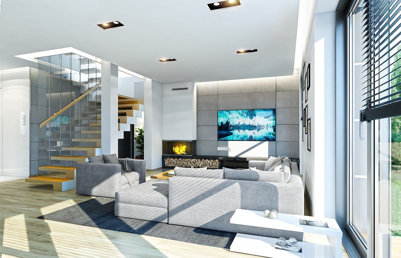 Projekt domu Kasjopea 7 to zupełnie nowy projekt z popularnej kolekcji domów „Kasjopea”. Projekt różni się zasadniczo od pozostałych domków z tej kolekcji, ma nowy oryginalny i nowoczesny wyraz architektoniczny. Osiągnięto go łącząc prostotę, oszczędność dodatków i detali, oraz ciekawą kolorystykę i materiały. Projekt domu Kasjopea 7 to budynek piętrowy, dla 4- 7-osobowej rodziny. Bryła domu jest piętrowa, przykryta czterospadowym dachem, z dobudowaną parterową częścią z garażem dwustanowiskowym. Projekt domu Kasjopea 7 to duża, komfortowa i reprezentacyjna willa, przeznaczona dla Inwestorów, którzy marzą o swobodzie przestrzeni. Jednocześnie budynek ma praktycznie zaprojektowane wnętrze, a jego konstrukcja jest dość prosta i łatwa w budowie. Elewacje domu podzielone są na poziome pasy. Dolny pas parteru ma szare boniowania, ściany piętra pozostają białe. Duże okna, podcienie i balkony dodatkowo ozdabiają bryłę budynku. Całość tworzy nowoczesną i dynamiczną sylwetkę domu. Wnętrze: parter to przede wszystkim naprawdę duży salon, połączony z jadalnią i holem, tworzący niemal 60-metrową przestrzeń dzienną. Przy wejściu do domu od frontu zaprojektowano dużą kuchnię ze stołem na szybkie posiłki. Z przedsionka dostajemy się do podwójnego garażu i do kotłowni. Za schodami, nieco odseparowany od salonu zlokalizowany jest dodatkowy pokój z własną łazienką: gabinet, lub sypialnia gościnna. Może to być również pokój dla seniora. Na piętrze zaprojektowano aż cztery sypialnie i dwie łazienki. Sypialnie dzieci mają wbudowane szafy. Sypialnia rodziców to osobny apartament z własną łazienką, garderoba i zadaszonym balkonem. Projekt domu Kasjopea 7 to komfortowy, funkcjonalnie zaprojektowany dom, o nowoczesnej i reprezentacyjnej architekturze. Projekt bardzo łatwo można dostosować do standardu NF40. Projekt dostępny jest w odbiciu lustrzanym i z wyższym kątem nachylenia dachu (projekt domu Kasjopea 7 B) oraz kilku wersjach: podstawowa (projekt domu Kasjopea) i jej wersja odświeżona (projekt domu Kasjopea 8), bliźniak (projekt domu Kasjopea 2), ze zmienionym układem pomieszczeń (projekt domu Kasjopea 3), pomniejszona (projekt domu Kasjopea 4), komfortowa (projekt domu Kasjopea 5), największa (projekt domu Kasjopea 6).