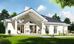 Projekt domu Willa Parkowa to projekt stylowej willi jednorodzinnej, przeznaczonej dla 4-5 osobowej rodziny, parterowej, z niewielkim poddaszem użytkowym.