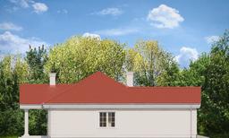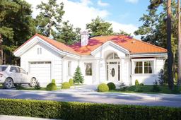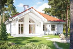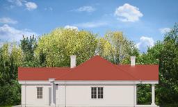 Projekt domu Dom na Parkowej 2 jest zdecydowanie najtańszą, najbardziej ekonomiczną wersją projektu z serii Domów na Parkowej. Projekt domu Dom na Parkowej 2 jest węższy i mniejszy od wersji bazowej, ma pojedynczy garaż, nie ma zagospodarowanego poddasza (tylko strych z wyciąganymi schodkami drabinkowymi), a strop nad parterem zaprojektowany jest w konstrukcji belkowej drewnianej zamiast płyty monolitycznej - żeby obniżyć nieco koszt realizacji. Przy czym strop zaprojektowano z okładziną z płyt OSB nad okładzinami z płyt g-k po to, żeby uniknąć potencjalnych rys na sufitach. Architektura domu stanowi nawiązanie do amerykańskich podmiejskich willi, oraz po części do polskiego dworku. Wygląd zewnętrzny domu jest klasyczny - jego wnętrze natomiast ma współczesny, funkcjonalny program i układ. Wnętrze podzielono na część dzienną, z ładnym salonem z jadalnią, połączonym z holem i kuchnią, oraz część nocną z trzema sypialniami i łazienką. Sypialnie dziecięce posiadają szafy wbudowane, wnękowe, sypialnia rodziców – garderobę. W wygodnego przedsionka z szafami przedostajemy się też do części gospodarczo –garażowej domu - do kotłowni i garażu. Na strychu pozostawiono wolną przestrzeń magazynową domu, albo po prostu pustkę. Ten w sumie nieduży dom dzięki zwartej prostokątnej bryle i sensownemu wnętrzu, jest bardzo funkcjonalny, a dzięki wbudowanym szafom, spiżarce, garderobie, strychowi, będzie bardzo „pakowny”. Architektura domu jest spokojna, stonowana, operuje nawiązującym do tradycji detalem, ale z zachowaniem dystansu i smaku. Front domu ozdabia reprezentacyjne wejście z szerokimi drzwiami z naświetlami, a od strony elewacji tylnej mamy z kolei duży zadaszony taras z szerokim przeszkleniem otwierającym salon na ogród. Projekt domu Dom na Parkowej 2 stanowi świetną propozycję dla osób, które z przyczyn finansowych, lub po prostu praktycznych, wcale nie chcą mieć bardzo dużego domu, ale jednocześnie w ramach ograniczonej powierzchni chcą uzyskać maksimum komfortu, wygody i poczucia luksusu. Mały dom nie musi oznaczać rezygnacji ze spełnienia marzeń. Jednocześnie materiały, izolacje i instalacje zastosowane w projekcie sprawią, że budynek będzie prosty i niedrogi w budowie, oraz tani w późniejszym utrzymaniu. Zapraszamy do zapoznania się z pełną ofertą pracowni MG Projekt: projekt domu Dom na Parkowej, projekt domu Dom na Parkowej 3, projekt domu Dom na Parkowej 4, projekt domu Dom na Parkowej 5, projekt domu Dom na Parkowej 6, projekt domu Dom na Parkowej 7 A, projekt domu Dom na Parkowej 7 B.