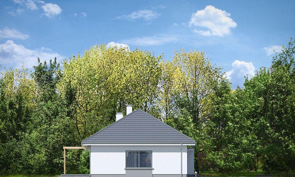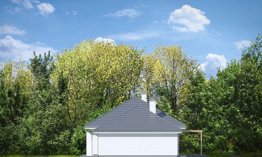 Projekt domu Wymarzony 11 to uroczy dom jednorodzinny z kolekcji naszych projektów „Wymarzonych”. Jest to jedna z najmniej rozbudowanych wersji z projektów tej serii, jednocześnie jedna z najładniejszych i najzgrabniejszych. Prostokątną bryłę z garażem przekryto dwoma dachami czterospadowymi o kącie nachylenia 30 stopni. Projekt domu Wymarzony 11 ma nowoczesną stylistykę i łączy tradycyjną sylwetkę z nowoczesnymi detalami i materiałami wykończeniowymi. Połączenie białych tynkowanych ścian z szarymi dodatkami, szarą dachówką i ramami okien, dają pełen elegancji i sznytu wygląd zewnętrzny budynku. Główne ozdoby elewacji to: wejście z daszkiem w kształcie litery „L” i ładnymi drzwiami frontowymi, oraz strefa tarasowa od strony ogrodu z dużym przeszkleniem z pokoju dziennego i z pergolą. Dom przeznaczony jest na działkę z ogrodem i oświetleniem słonecznym z tyłu lub z boku budynku. Wnętrze domu mieści w sobie wygodną cześć dzienną, oraz aż pięć dodatkowych pokoi, co przy niewielkiej powierzchni domu jest bardzo dobrym wynikiem. Dom Wymarzony 11 może być swobodnie użytkowany nawet przez rodzinę 2 + 4. Pokoje mogą być zagospodarowane jako sypialnie dziecięce. Jeden z pokoi może pozostać domowym biurem / gabinetem. Do wnętrza wchodzimy wygodnym przedsionkiem do części dziennej, z salonem, jadalnią i otwartą kuchnią. W salonie przewidziano ścianę kominkowo – telewizyjną, miejsce na wygodny wypoczynek, a szerokie drzwi balkonowe otwierają pokój dzienny na taras i ogród. Z salonu przez hol- korytarz przedostajemy się do części domu z sypialnią rodziców z garderoba, oraz sypianiami dzieci. Dalej dom łączy się z częścią garażowo-gospodarczą budynku, przez pomieszczenie gospodarcze, z garażem i kotłownią. Strych nad parterem zaprojektowano jako przestrzeń magazynową, na którą dostajemy się schodkami drabinkowymi. Projekt domu Wymarzony 11 to elegancki, komfortowy dom dla 4, 5, 6-osobowej rodziny. Jego funkcjonalność i praktyczność zagospodarowania wnętrza łączy się z solidną konstrukcją i prostotą architektury. Budynek jest energooszczędny, ma łatwą w budowie konstrukcję, będzie niedrogi w utrzymaniu. Zapraszamy do zapoznania się z pełną ofertą pracowni MG Projekt tej serii: Wymarzony, Wymarzony 2, Wymarzony 3, Wymarzony 4, Wymarzony 5, Wymarzony 6, Wymarzony 7, Wymarzony 8, Wymarzony 9, Wymarzony 10.