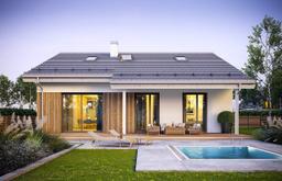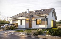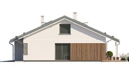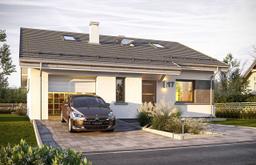 Projekt domu Ambitny 2 jest to projekt domu jednorodzinnego z serii ”Ambitny” - wariant projektu z niższym dachem o mniejszym kącie nachylenia, oraz z mniejszym poddaszem nad parterem. Ambitny 2 to dom dla 3- 5-osobowej rodziny, parterowy z poddaszem użytkowym, o prostej bryle - nieskomplikowany w budowie. Bryła budynku zbudowana jest na planie prostokąta, dom przykryty jest dwuspadowym dachem o kalenicy równoległej do elewacji frontowej. Konstrukcję budynku zaprojektowano z wykorzystaniem wiązarów prefabrykowanych, dzięki czemu budowa domu jest znacznie szybsza, łatwiejsza - i co najważniejsze - tańsza. Murowana część domu kończy się na wieńcach nad ścianami parteru, oraz na dwóch ścianach szczytowych poddasza. Pozostałą część konstrukcji stropu, ścianek kolankowych, oraz więźby dachowej stanowi układ drewnianych wiązarów ramowo -kratowych. Taka mieszana konstrukcja domu jest coraz częściej stosowana na budowach - jako nowoczesne i bardzo wydajne rozwiązanie. Architektura domu jest nowoczesna, wykorzystuje modne detale, materiały i kolorystykę, a jednocześnie dom ma spokojny i powściągliwy wygląd - bez zbędnej ekstrawagancji. W wyglądzie zewnętrznym budynku króluje poczucie solidności i prostoty. Wejście zaakcentowano narożnym podcieniem i podestem. Od strony elewacji ogrodowej dom zdobią duże przeszklenia otwierające pokój dzienny na taras, okładzina drewniana (lub drewnopodobna) ścian salonu, oraz duże zadaszenie tarasu. Wnętrze budynku zaprojektowano tak, aby rodzina miała możliwość zamieszkać w nim najpierw na parterze, a potem w drugim etapie zagospodarować poddasze. Możliwość wykończenia wnętrza domu etapami jest bardzo dużym atutem projektu. Na parterze mam do dyspozycji dużą połączoną przestrzeń dzienną, składającą się z salonu, holu i kuchni. W oddzielonym narożniku domu mamy do dyspozycji dwa pokoje i łazienkę, oraz pralnię. Natomiast obok przedsionka wejściowego zlokalizowana jest kotłownia i garaż. Na poddaszu mamy do dyspozycji dwa pokoje i łazienkę - które mogą być wykończone w późniejszym etapie. Budynek ma bardzo prostą konstrukcję. Będzie szybki w budowie i niedrogi. Dom jest energooszczędny - doskonałe izolacje, zastosowane nowoczesne materiały i instalacje pozwolą uzyskać niskie koszty utrzymania budynku. Dom jest świetną propozycją dla rodzin budujących swój pierwszy dom, które są na początku drogi, z dziećmi które dopiero rosną. Dodatkowe rezerwowe poddasze daje zapas przestrzeni do wykorzystania na później. Dom doskonale sprawdzi się też dla osób starszych, do których przyjeżdżają dzieci i wnuki w gościnę. Zapraszamy https://www.mgprojekt.com.pl/