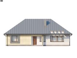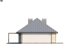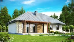 Z140 to propozycja domu parterowego z dachem kopertowym. Klasyczna, zwarta bryła ubrana we współczesne oryginalne dodatki świetnie podkreśla jego wyjątkowy charakter. Przestrzeń została zaprojektowana na planie prostokąta, dzięki czemu dom będzie tani w budowie oraz ekonomiczny w użytkowaniu. Strefa dzienna to przestronny salon z jadalnią. Przestrzeń w projekcie  jest rozplanowana z myślą o wygodzie przyszłych domowników. Przestronny salon jest doskonałym miejscem codziennego odpoczynku oraz wieczornego relaksu. Kuchnia z nowoczesną wyspą otwarta na salon dodatkowo powiększa optycznie przestrzeń. Na parterze znajdują się także trzy sypialnie oraz wygodna łazienka z wanną. W projekcie przewidziano również miejsce na osobną toaletę z prysznicem i pojemną spiżarnię z oknem. Wykonując strop betonowy można pomyśleć o zagospodarowaniu poddasza w przyszłości, co powiększy powierzchnię użytkową domu o ponad 40m2. Z140 to wyjątkowy projekt domu. Bryła, funkcja oraz ciekawe wykończenie sprawiają, że jest to doskonała propozycja dla każdego, bez względu na wiek.
