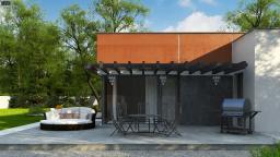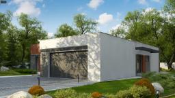 Zx101 GP2 to przytulny dom parterowy. Elewacja budynku wykonana została z białego, szarego oraz brązowego tynku strukturalnego. Dwustanowiskowy garaż idealnie współgra z resztą domu. Warto zauważyć, że garaż można przekształcić w dodatkowe pomieszczenia mieszkalne. Dom został podzielony na dwie części: dzienną oraz nocną. Po lewej stronie, czyli w strefie dziennej znajdują się kuchnia łączona z jadalnią, salon, z którego bezpośrednio można się dostać na taras oraz WC. W strefie dziennej zostały umiejscowione zostały trzy pokoje, pralnia, łazienka. Projekt Zx101 GP 2 będzie idealnym rozwiązaniem dla osób, które cenią sobie nowoczesność oraz komfort posiadania dużej powierzchni użytkowej.