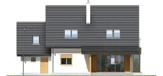 bryła bez wykusza, dach z lukarnami, różne wersje garaży