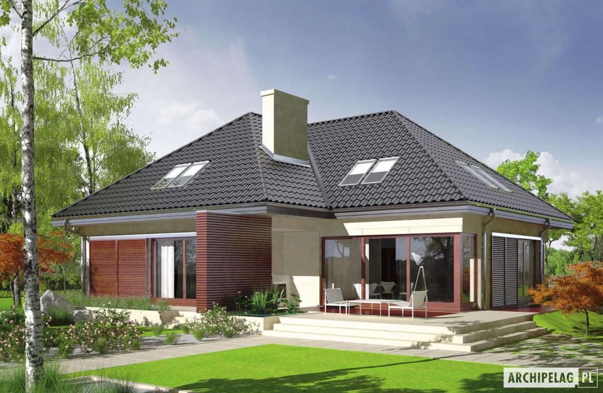 - Teo II – większa pow. użytkowa, inna lokalizacja kominka, z garażem