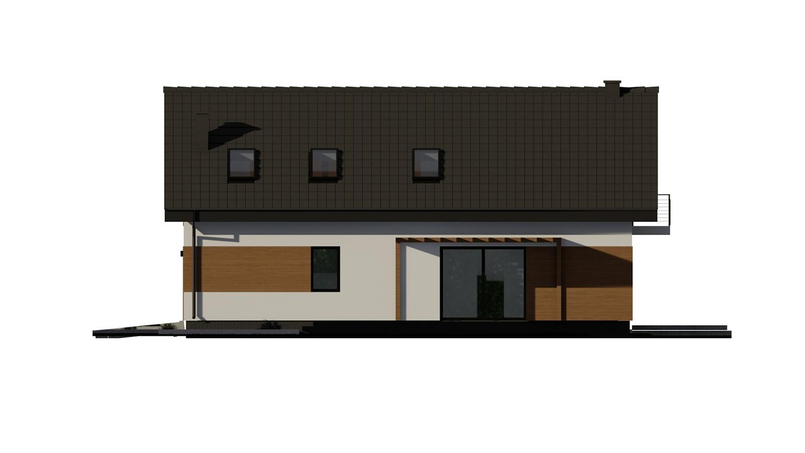 Gotowy projekt domu uA34v3 jest to tradycyjny projekt domu, który cechuje prosta bryła na planie prostokąta z nieskomplikowanym dwuspadowym dachem- idealnym pod instalację fotowoltaiczną. W bryle tego gotowego projektu domu jednorodzinnego zaplanowano garaż na dwa auta. Elewacja zewnętrzna utrzymana została w ciepłej palecie kolorystycznej. Do środka domu dostajemy się bocznym wejściem głównym, prowadzącym do wiatrołapu z miejscem na szafę wnękową. Wiatrołap pełni funkcję łącznika części mieszkalnej domu z częścią garażową, w której znajduje się także pomieszczenie gospodarze. Na parterze architekt zaplanował strefę dzienną, a w niej przestronny salon z nowoczesnym, narożnym kominkiem. Wygodna do gotowania kuchnia w kształcie litery U znajduje się w pobliży strefy jadalnianej. Z salonu zapewniono dostęp do strefy relaksu na tarasie. Dodatkowo na parterze znajduje się toaleta z prysznicem oraz gabinet. Na poddaszu użytkowym znajdują się dwie przytulne sypialnie oraz komfortowa master bedroom. Dopełnieniem program poddasza jest ogólnodostępna łazienka oraz praktyczne pomieszczenie pralni. Gotowy projekt uA34v3 to idealne rozwiązanie dla rodziny 2+2, która ceni sobie tradycyjny styl oraz poszukuje wygodnego z mieszkaniu i funkcjonalnego projekt domu o powierzchni użytkowej 125 m2.