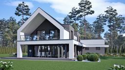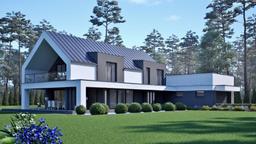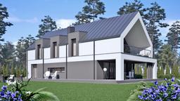 Projekt domu uA176v1 jest to projekt wyróżniający się na tle innych gotowych projektów domów dzięki swej nietuzinkowej bryle i nowoczesnemu charakterowi. Z pewnością jest to projekt charakterystyczny, oryginalny i zapadający z pamięć. Projekt powstał na planie dwóch prostokątów- jeden stanowi część mieszkalną a drugi garażową. Część garażowa zapewnia miejsce parkingowe na dwa auta oraz rowery i inne sprzęty. Wydzielone zostało tu pomieszczenie gospodarcze oraz garderoba będąca łącznikiem garażu z częścią mieszkalną. Dzięki dużej powierzchni garażu inwestor zyskuje dodatkowe, cenne miejsce do przechowywania. Nad garażem zastosowano dach płaski. Wejście do domu zostało cofnięte w stosunku do głównej osi budynku, dzięki czemu powstało praktyczne zadaszenie strefy wejściowej. Po przekroczeniu drzwi wejściowych znajdujemy się w wiatrołapie, który prowadzi do okazałej i komfortowej strefy dziennej, która będzie idealnym miejscem spotkań i relaksu dla domowników. W jej skład wchodzi reprezentacyjny salon z duża jadalnią, która pomieści stół na kilkanaście osób i z powodzeniem będzie doskonałym miejscem do organizacji niejednej uroczystości rodzinnej. Kolejnym atutem tego projektu jest duża, wygodna kuchnia z miejscem na wyspę kuchenną z praktyczną spiżarnią. Na parterze zaplanowano również dodatkowy pokój, który służyć może jako gabinet lub sypialnia dla gości oraz niewielką łazienkę. Na szczególną uwagę zasługuje okazały i reprezentacyjny taras z betonową pergolą, który jest powiększeniem salonu i będzie idealną strefą relaksu na świeżym powietrzu. Poddasze jest to prywatna strefa domowników z trzema sypialniami. Główna sypialnia master bedroom to strefa relaksu i odpoczynków dla rodziców. Wyposażona została ona w prywatną łazienkę z wanną i prysznicem oraz garderobę i wyjście na rozległy, zadaszony balkon. Dla dzieci zaplanowano dwie wygodne i ustawne sypialnie, każda z własną garderobą. Ponadto w strefie tej znajduje się ogólnodostępna łazienka oraz wygodna pralnia. Gotowy projekt domu uA176v1 z pewnością spełni oczekiwania najbardziej wymagających inwestorów, którzy cenią sobie nowoczesny styl, lubią duże przestrzenie i marzą do wygodnym miejscu do zamieszkania na miarę swoich potrzeb i oczekiwań. Projekt ten występuje również w wariancie uA176 z dachem dwuspadowym nad garażem.