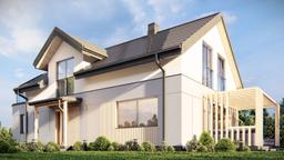 Gotowy projekt domu uA296 jest to projekt domu w tradycyjnym stylu z poddaszem użytkowym o nietypowym układzie funkcjonalnym. Na kondygnacji parteru wydzielono gabinet / biuro z osobnym wejściem i toaletą, połączony przejściem przez wiatrołap z częścią mieszkalną domu. Zadaszone wejścia główne i boczne oraz facjata z części centralnej dachu to cechy charakterystyczne tego gotowego projektu domu. W wewnętrznym układzie funkcjonalnym na parterze zaplanowano salon z kominkiem i strefą jadalnianą, który jest sercem tego domu oraz funkcjonalną kuchnię z wyspą kuchenną. Z jadalni zapewniono dostęp do bocznego tarasu z drewnianą pergolą. Na tej kondygnacji znajduje się także gabinet oraz toaleta z prysznicem. Poddasze użytkowe czyli prywatną strefę mieszkańców zajmują trzy przestronne sypialnie oraz duża i komfortowa łazienka ogólnodostępna. Dopełnieniem programu poddasza jest garderoba. Całość projektu uA296 zapewnia swoim domownikom dostęp do 157 m2 wygodnej powierzchni mieszkalnej.