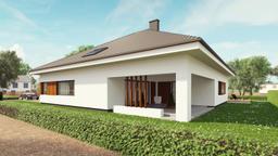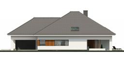Projekt uA72v1 to prestiżowy i energooszczędny dom jednorodzinny. Zaprojektowany został na planie dwóch prostokątów z widocznym podziałem na strefy. Strefa dzienna zawiera ogromny pokój dzienny z jadalnią oraz otwartą kuchnię. Jednym z udogodnień jest mała spiżarnia dołączona do kuchni. Przestrzeń tą dodatkowo powiększa duży, zadaszony taras, a za sprawą dużej ilości okien w całej strefie wydaje sie ona jaśniejsza. Dużym plusem są 4 pokoje, które można przeznaczyć zarówno na pokoje dla gości jak i własne sypialnie. Garderoba sprawia, że nie będzie potrzeby zmniejszania powierzchni pokoi w celu wstawiania do nich dodatkowych mebli. Dodatkiem jest także duże poddasze. Front domu zawiera reprezentacyjne wejście połączone z wjazdem do dwustanowiskowego garażu. Poszczególne elementy domu złączone w jedno tworzą spójną i uporządkowaną całość.