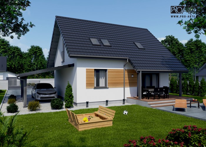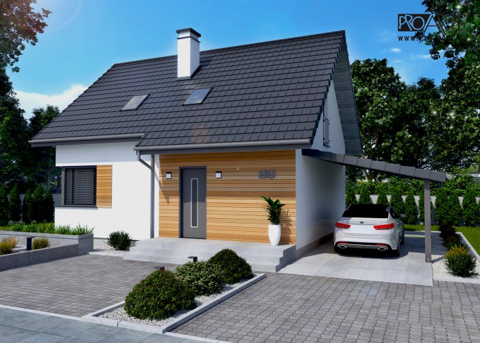 Pokrycie dachu | Od 15 stopni dachówka ceramiczna Koramic, akcesoria Koratech: Poniżej 15 stopni blachodachówka, blacha na rąbek (panelowa) lub papa na dachach płaskich.