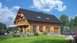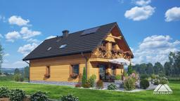 Dom w konstrukcji szkieletu drewnianego. Na parterze salon z aneksem kuchennym, wyjściem na taras i schodami na poddasze. Komunikacja, łazienka, pomieszczenie gospodarcze, wiatrołap, garaż. Na poddaszu trzy pokoje, łazienka, komunikacja, garderoba, łazienka oraz balkon dostępny z dwóch pokoi. Zwarta bryła budynku oraz dach dwuspadowy sprzyjają szybkiej i taniej budowie oraz niskim kosztom eksploatacji.