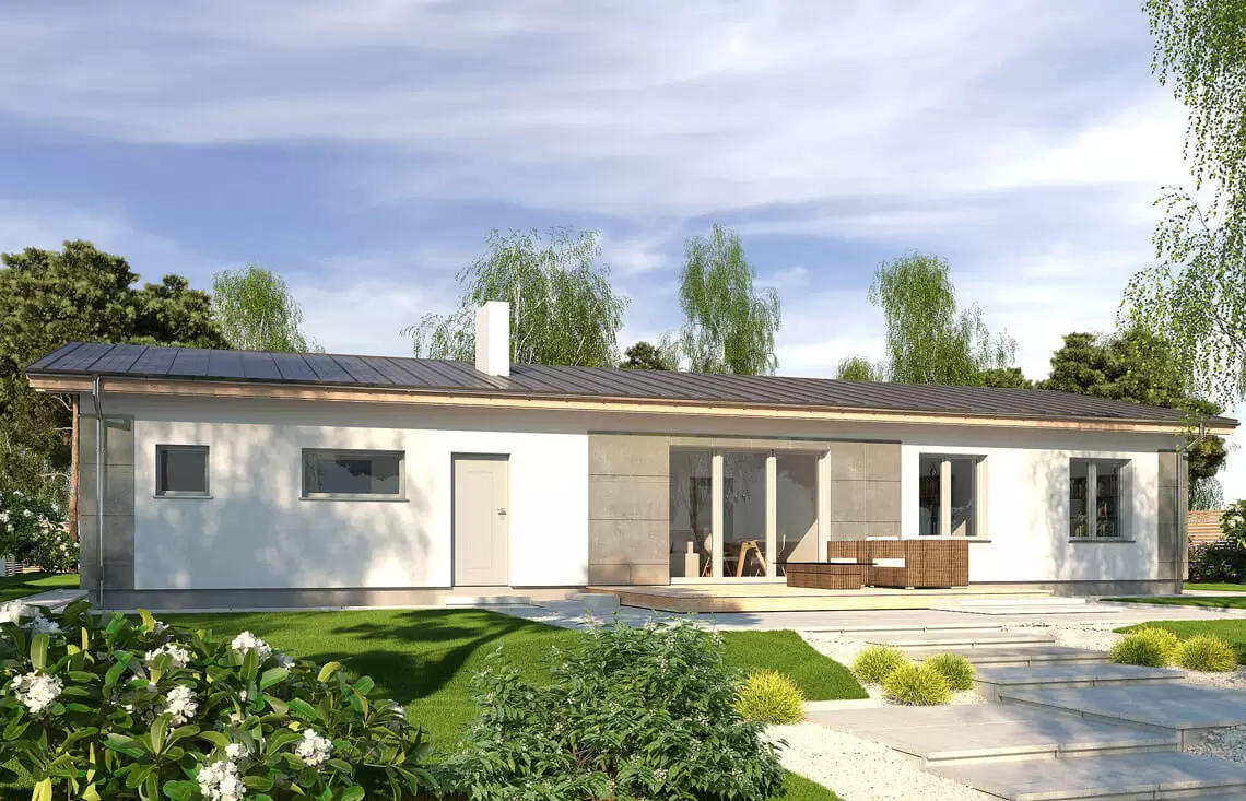 Nowoczesny i efektowny dom parterowy o nazwie Nina F Plus 37 został stworzony z myślą o 4-5 osobowej rodzinie, która pragnie cieszyć się maksymalnym komfortem i wyjątkowym stylem. Ten projekt to ulepszona wersja popularnego domu Nina F, oferująca dodatkową przestrzeń oraz jeszcze większe możliwości funkcjonalne.