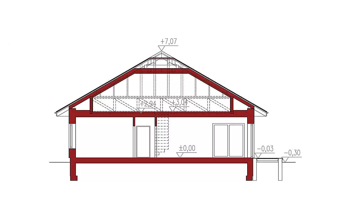 Dom ten wyróżnia się klasyczną bryłą, co nie tylko nadaje mu elegancji, ale także ułatwia późniejszą aranżację wnętrza.