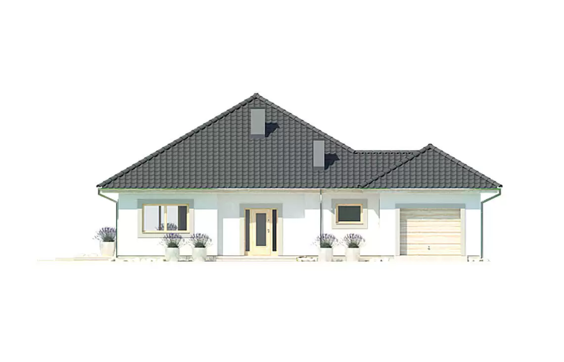 Dodatkowym atutem domu Bella B jest jednostanowiskowy garaż, który z pewnością docenią wszyscy miłośnicy swojego samochodu.