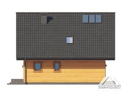 Dom w konstrukcji szkieletu drewnianego. Na parterze salon z wyjściem na taras i schodami na poddasze, kuchnia, spiżarka, wiatrołap, kotłownia, łazienka. Na poddaszu cztery pokoje, łazienka, komunikacja. Balkon dostępny z dwóch pokoi. Zwarta bryła budynku oraz dach dwuspadowy sprzyjają szybkiej i taniej budowie oraz niskim kosztom eksploatacji.