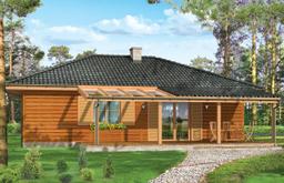 Projekt domu Dudek to dom parterowy z bali litych, mogącego służyć jako całoroczne mieszkanie dla rodziny 4- 5-osobowej, jak i jako dom letniskowy. Konstrukcja sumikowo-łątkowa z litych bali została od wewnątrz ocieplona wełną mineralną, więc budynek spełnia wszelkie normy cieplne. Sam dom, oprócz salonu z kominkiem i trzech sypialni z łazienką ma duży zadaszony taras, który może być częściowo przeszklony. W pomieszczeniu gospodarczym przewidziano kocioł c.o. Projekt domu Dudek dostępny jest także w wersji odbicia lustrzanego. Zapraszamy!