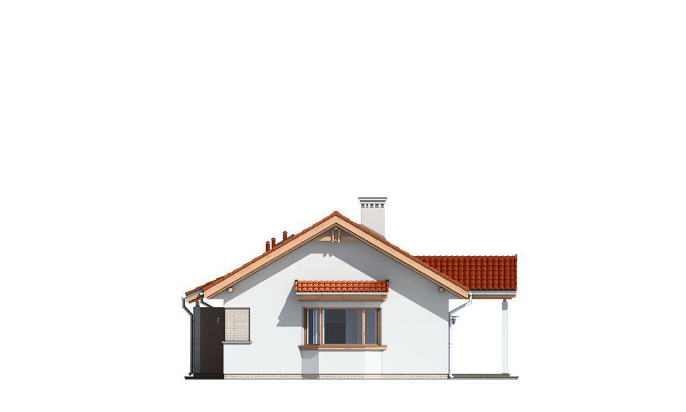 Projekt domu Perełka 2 to domek bliźniaczo podobny do popularnego projektu Klejnot. Tym razem dom przykryty jest dwuspadowym prostym dachem. Domek jest parterowy, przeznaczony dla 3- 4-osobowej rodziny. Bryła budynku zbudowana została na planie prostokąta z dobudowanym garażem. Wzbogacono ją gankiem wejściowym, wykuszem w elewacji bocznej i ogrodową werandą, będącą zadaszeniem nad częścią tarasu. Duże ładne przeszklenia z podziałami, fragmenty elewacji obłożone płytkami klinkierowymi, nowoczesne materiały - wszystkie te elementy tworzą udaną całość z tradycyjnym kształtem domu. Wnętrze domu Perełka 2 to wygodne trzypokojowe mieszkanie z zapleczem technicznym. Reprezentacyjny salon z kominkiem łączy się przestrzennie z kuchnią i holem. Dwie sypialnie z łazienką znajdują się w przeciwnym skrzydle domu, w części nocnej. Schodami prowadzącymi z przedsionka dostajemy się na strych - w projekcie domu Perełka 2 nieużytkowy, który jednak można łatwo zaadaptować na dodatkowe poddasze użytkowe. Z boku domu dobudowano jednostanowiskowy garaż. Pracownia dysponuje także wariantem projektu domu Perełka 2 w odbiciu lustrzanym, oraz wersją bez garażu, tańszą w budowie (Projekt domu Perełka).
