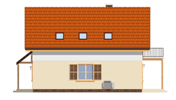Projekt domu Praktyczny B to niewielki domek jednorodzinny dla czteroosobowej rodziny. Parterowy budynek z poddaszem użytkowym. Ten sam projekt przedstawiamy w dwóch wersjach wariantowych - jako dom jednorodzinne dla jednej rodziny, oraz jako dom dwulokalowy - z wydzielonymi dwoma mieszkaniami na parterze i na poddaszu. Prezentowana wersja projektu domu to budynek dwulokalowy - pomyślany w szczególności o rodzinach mieszkających razem, na przekład trzypokoleniowych. Mieszczanie dolne zajmować może wówczas główna rodzina, na górze może natomiast mieszkać dorosłe dziecko ze swoją rodziną. Dom Praktyczny B jest prosty w budowie, ma nieskomplikowaną konstrukcję - przez to koszty realizacji domu będą rozsądne. Częścią wspólną obu mieszkań jest wspólne wejście, kotłownia i klatka schodowa z korytarzem. Mieszkanie na parterze - to dwupokojowy apartament z kuchnią i łazienką. Na poddaszu natomiast znajdziemy lokal czteropokojowy (ewentualnie trzypokojowy z wydzieloną kuchnią). Projekt domu Praktyczny B może zainteresować wielopokoleniowe rodziny, może też być świetnym pomysłem na dom letniskowy - gdzie na raz, niezależnie od siebie przebywać mogą dwie rodziny. Zapraszamy do zapoznania się też z projektem domu Praktyczny A.